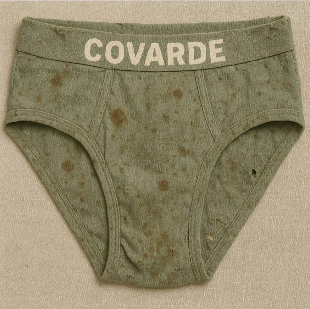 A vizinhança ficou em alvoroço, e ao cair da tarde um grupo de moleques encontrou perto da Feira do Priquito a prova do crime: uma cueca verde, cagada e abandonada na fuga.