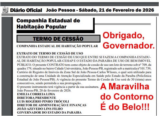 O Governador João Azevedo mostrou-se sensível à causa Botafoguense e tomou as providências necessárias através de documento CEHAP publicado no Diário Oficial do Estado na edição de 21 de fevereiro de 2026, como ilustrado na foto em anexo.