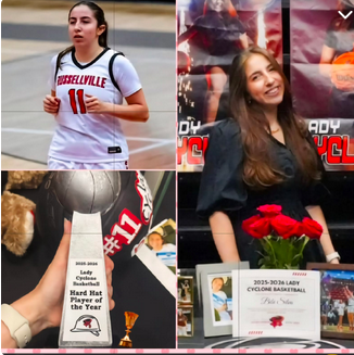 Bibi, jogadora de basquete na Russellville High School, em Arkansas, abraça troféu que recebeu, última semana.