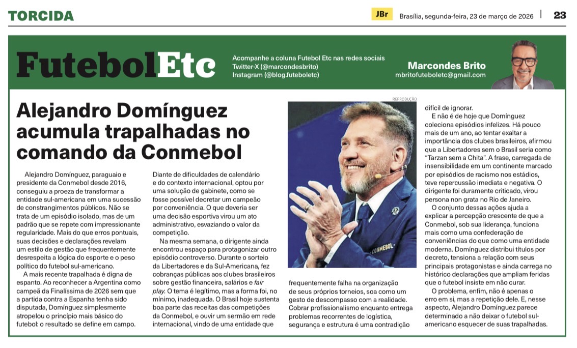 O conjunto dessas ações ajuda a explicar a percepção crescente de que a Conmebol, sob sua liderança, funciona mais como uma confederação de conveniências do que como uma entidade moderna. Domínguez distribui títulos por decreto, tensiona a relação com seus principais protagonistas e ainda carrega no histórico declarações que ampliam feridas que o futebol insiste em não curar.