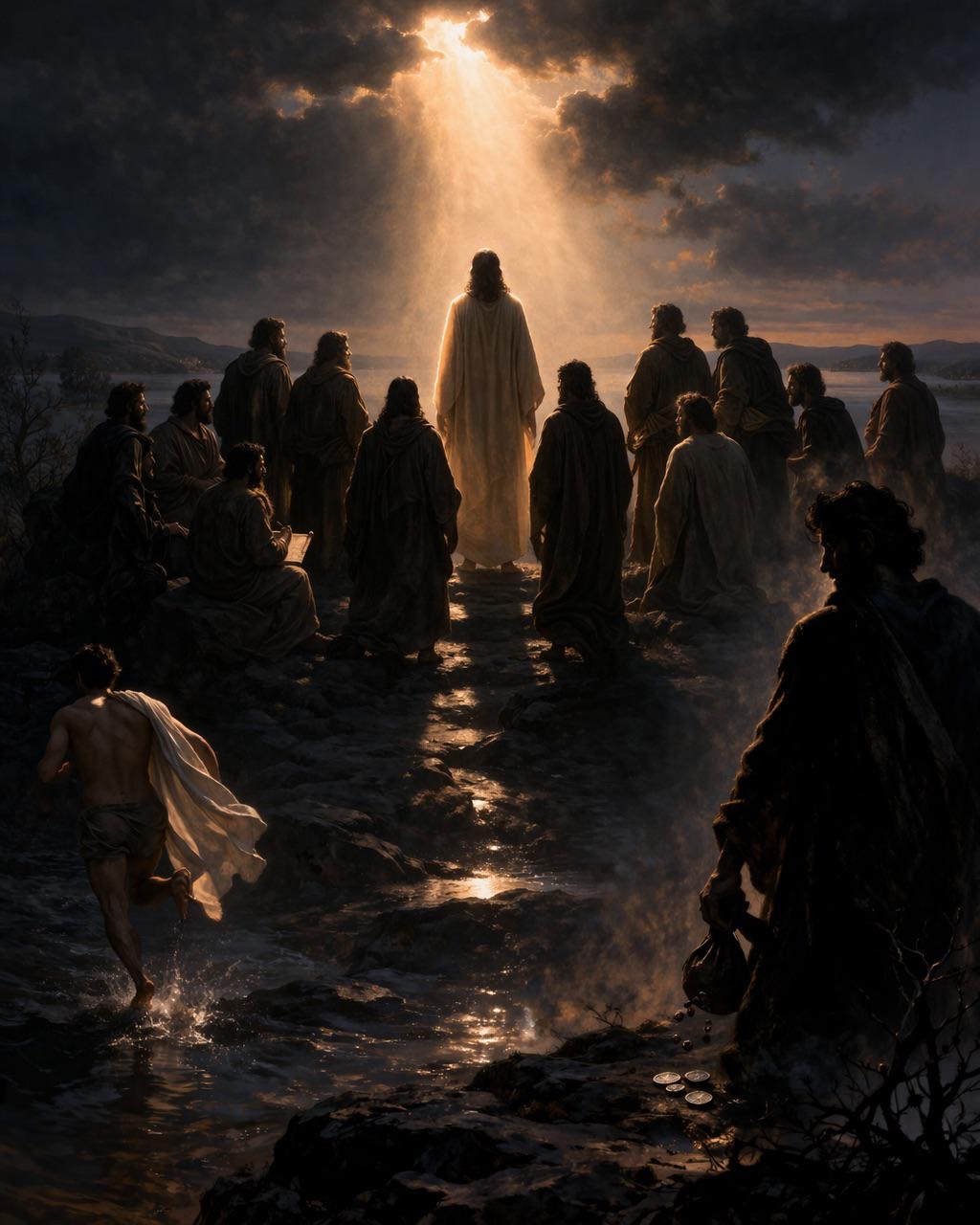 Jesus não escolheu apenas homens — projetou neles manifestações de sua divindade humana. Os discípulos não são biografias, são reflexos. Cada um carrega uma parcela daquilo que, no Cristo, é inteiro, como se Deus, ao decidir tornar-se homem, tivesse distribuído em doze rostos as suas próprias tensões — e, ao fim, as reunido na cruz.