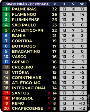 Além do Santos, equipes como Chapecoense e Remo também aparecem em situação delicada, compondo um Z4 que mistura tradição e reconstrução.