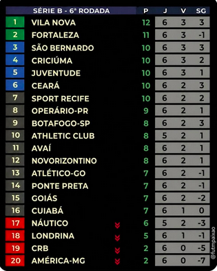 Juventude, Ceará e Sport têm a mesma pontuação e estão a apenas dois pontos do líder Vila Nova. A disputa promete ser longa e apertada.