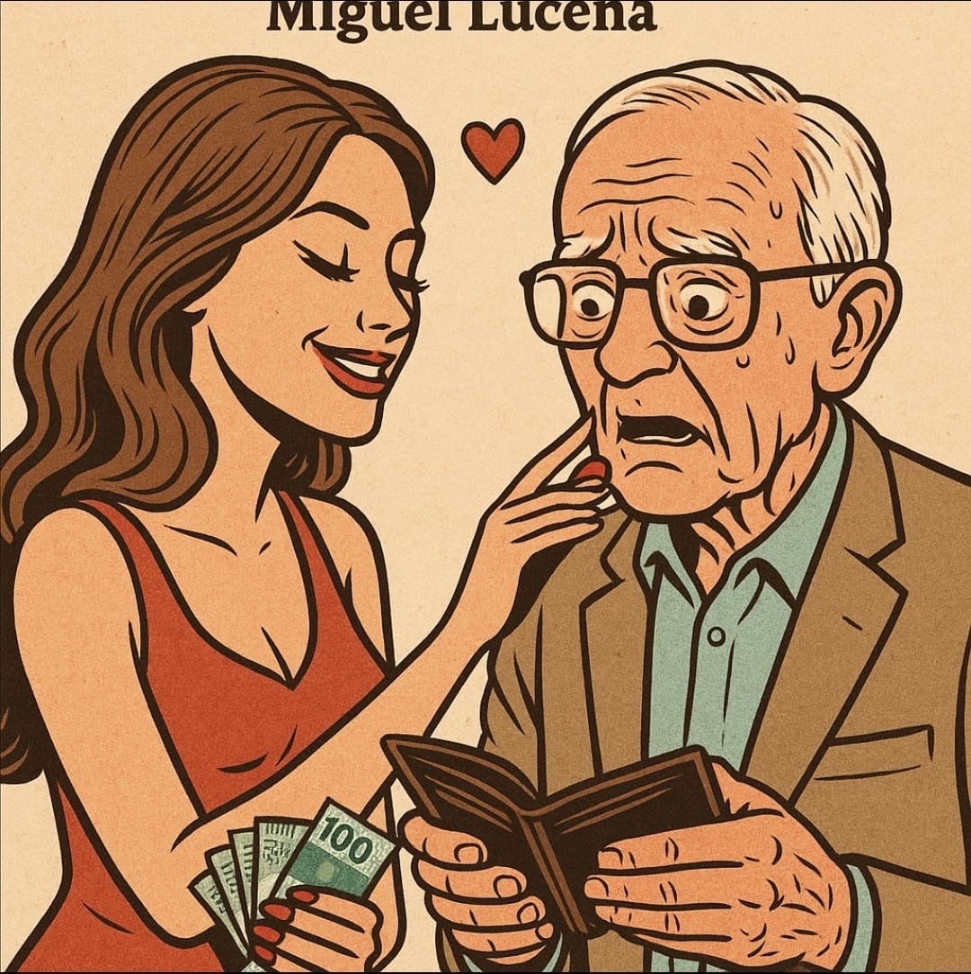 Ela dizia “meu amor” com tanta doçura que ele nem percebeu o som metálico do cofre se abrindo. Entre beijos e boletos, o romance deslizou até o saldo virar saudade.