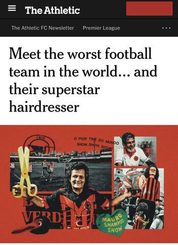 O New York Times também se encantou com Mauro Shampoo, ex-jogador, cabeleireiro e ícone pop recifense, que marcou um único gol (discutível) em oito anos de clube. Hoje, aos 68 anos, ele comanda o “Arena Shampoo”, seu salão de beleza em Boa Viagem, cercado por fotos, bonecos e lembranças do Íbis.