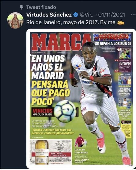 Naquele período, Virtudes era correspondente do tradicional jornal esportivo Marca, da Espanha. Sua carreira ganhou projeção internacional quando o Real Madrid fechou a contratação de Vinícius Júnior junto ao Flamengo por 40 milhões de euros. Foi ela a responsável pela manchete histórica de capa do Marca que cravou: “Em alguns anos, o Madrid pensará que pagou pouco”, previsão que o tempo tratou de confirmar diante do protagonismo que o brasileiro alcançou no futebol mundial.