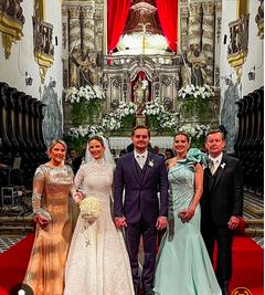 Totinha e Natascha subiram ao altar, sob o olhar atento da Mônica Lisboa, Figueiredo ( mãe da noiva) e do casal Tota Carneiro, pais do noivo.