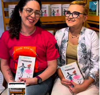 A professora Nelida Campos e a quase médica, Tatiana Cunha , já de posse do livro a ser lançado dia 24, na Livraria União, do Espaço Cultural. Será um sarau cultural.