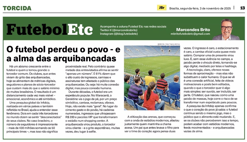 A pesquisa da Infobip apenas confirma o que o coração do povo já sabia: o futebol continua sendo o mesmo jogo, mas o público que o alimenta está mudando. E, se os clubes não perceberem isso a tempo, podem acabar com estádios modernos, feeds movimentados – e arquibancadas vazias de alma.