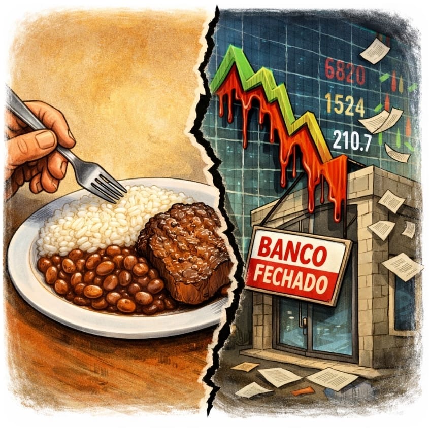 Arroz, feijão e carne a gente apalpa, pesa na balança e põe no prato. Alimentam o corpo e custam suor. Já no mercado financeiro, bilhões evaporam e reaparecem na velocidade de um clique — números que sobem e descem sem cheiro, sem gosto, sem substância.