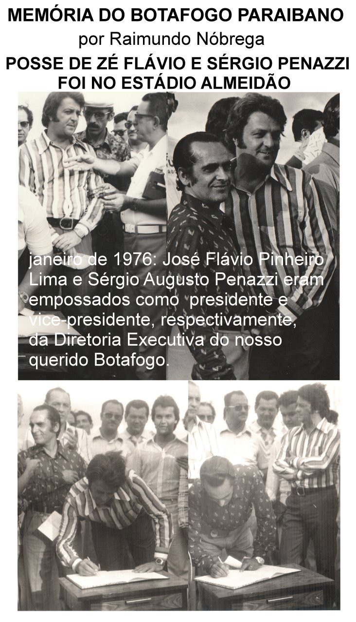 Eleitos no início do ano pelo Conselho Deliberativo, finalmente em 25 de janeiro de 1976, em pleno Estádio Almeidão, diante da torcida, José Flávio Pinheiro Lima e Sérgio Augusto Penazzi tomavam posse como presidente e vice-presidente, respectivamente, da Diretoria Executiva do nosso querido Botafogo, quando foi nomeada a seguinte diretoria: