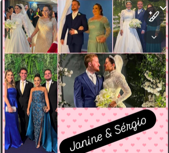 Eles, os noivos, Janine Tillman, filha de Betânia Miranda e Sérgio Falcone, filho de Sérgio e Nadja Falcone, não trocaram apenas alianças, última semana, ao se unirem perante Cristo.
