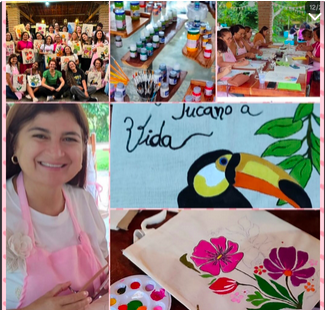 Ana Gomes, da ‘Casa de Ana’, Hospedagem Rural Afetiva, na cidade de Areia PB, acertou em cheio ao realizar no espaço da bela chácara uma imersão entre pincéis e tintas produzindo bags.