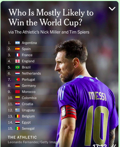 Enquanto torcedores e analistas digeriam o grupo considerado mediano, mas nada confortável, a estatística mundial tratou de entrar em cena. O The New York Times, por meio de seu braço esportivo, o The Athletic, divulgou uma projeção dos prováveis campeões do mundo em 2026, colocando a Argentina como principal favorita ao título. Logo atrás aparecem Espanha, França e Inglaterra, seleções que, segundo o levantamento, reúnem estabilidade tática, renovação bem-sucedida e alto nível técnico coletivo. O Brasil surge apenas na quinta colocação desse ranking probabilístico, reflexo direto da instabilidade recente, das trocas no comando técnico e das oscilações apresentadas ao longo do atual ciclo.
