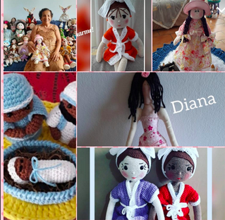 Trocamos figurinhas, é claro, e ao entrar no seu instagran me deparei com a arte criativa, cheia de afetos, da Miriam Santos. Ela, (@miriamsantos6859) que hoje vive em outro estado produz essas bonecas ( todas tem nome) para o Mundo.