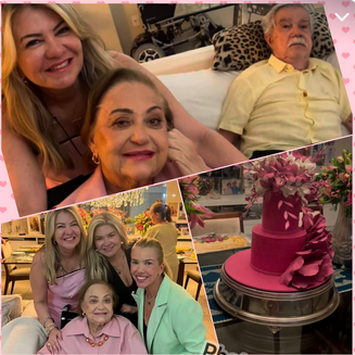 Edna Bonavides Martins, estilista famosa, lenda viva na sociedade paraibana, casada com o médico Urologista Joaquim Martins, ambos aposentados, recebendo os cuidados das filhas, Danielle, Giullyana e Erica, última semana. Eles receberam mimos.