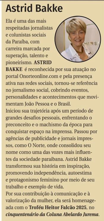Essa sou eu nas gentis palavras do jornalista Abelardo Jurema que me fez merecedora do badalado Troféu Heitor Falcão, última semana.