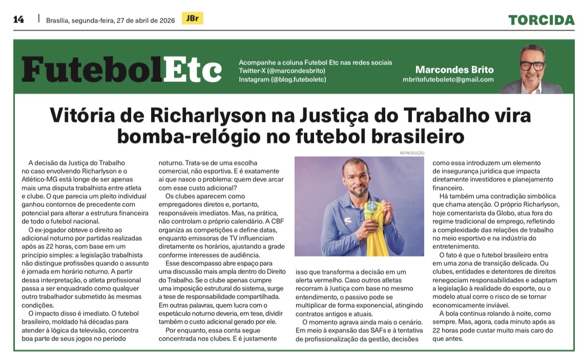 Há também uma contradição simbólica que chama atenção. O próprio Richarlyson, hoje comentarista da Globo, atua fora do regime tradicional de emprego, refletindo a complexidade das relações de trabalho no meio esportivo e na indústria do entretenimento.