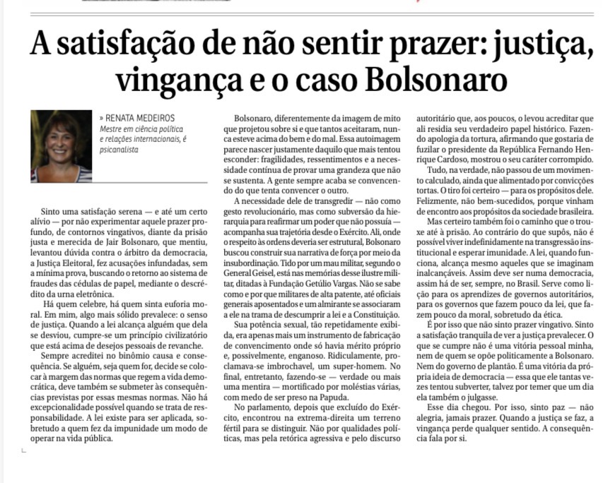 Mais uma vez, uma colunista do Portal O Norte Online ganha destaque em um dos principais jornais do país — e reafirma o espaço que Renata e Lier conquistaram na imprensa nacional e internacional. A repercussão não é por acaso: é resultado de análise consistente, escrita elegante e coragem intelectual.