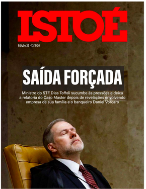 IstoÉ – Saída forçada – A IstoÉ apresenta a decisão de Dias Toffoli de deixar a relatoria do caso Banco Master como resultado de um cerco político e institucional crescente. A narrativa sugere que a pressão pública e as revelações envolvendo empresas ligadas à sua família e ao banqueiro Daniel Vorcaro tornaram insustentável sua permanência no processo, revelando o peso da opinião pública e da crise de confiança sobre os bastidores do Judiciário.