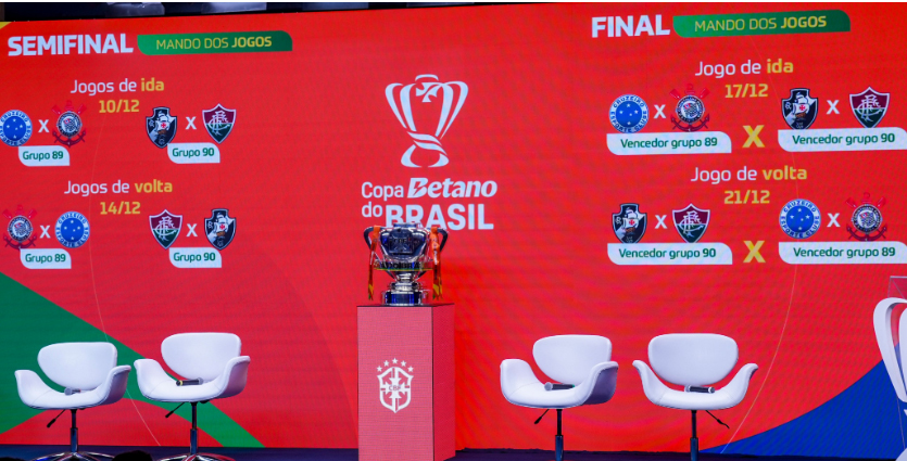 O sorteio dos mandos de campo das semifinais e da final da Copa Betano do Brasil 2025 foi realizado na tarde desta quarta-feira (22), na sede da Confederação Brasileira de Futebol (CBF), no Rio de Janeiro (RJ). Durante o evento, foi definido que Cruzeiro e Vasco serão os mandantes dos jogos de ida da 6ª fase, contra Corinthians e Fluminense respectivamente. Com isso, o Timão e o Cruzmaltino disputarão a partida de volta em casa.