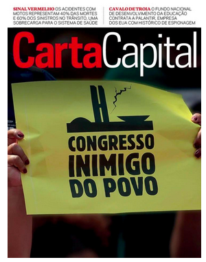 CartaCapital – Congresso inimigo do povo – Mantém sua linha crítica ao Legislativo e coloca o Congresso como antagonista direto da sociedade. A capa sugere que decisões tomadas em Brasília estariam cada vez mais desconectadas do interesse público, guiadas por acordos de bastidores, privilégios e autoproteção, reforçando a percepção de um abismo entre representantes e representados.