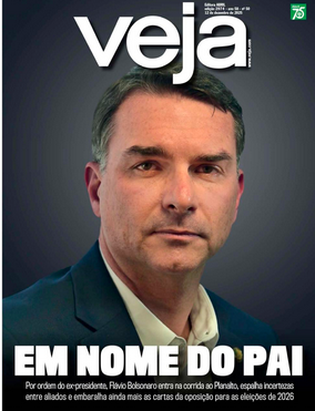 Veja – Em nome do pai – Destaca o peso do sobrenome Bolsonaro na reorganização da direita para 2026. A capa aponta como a decisão de Jair Bolsonaro de lançar Flávio como herdeiro político embaralha alianças, cria ruídos dentro da oposição e transforma a sucessão em um movimento de risco, mais emocional do que estratégico, para um campo que ainda tenta se reencontrar depois das derrotas recentes.