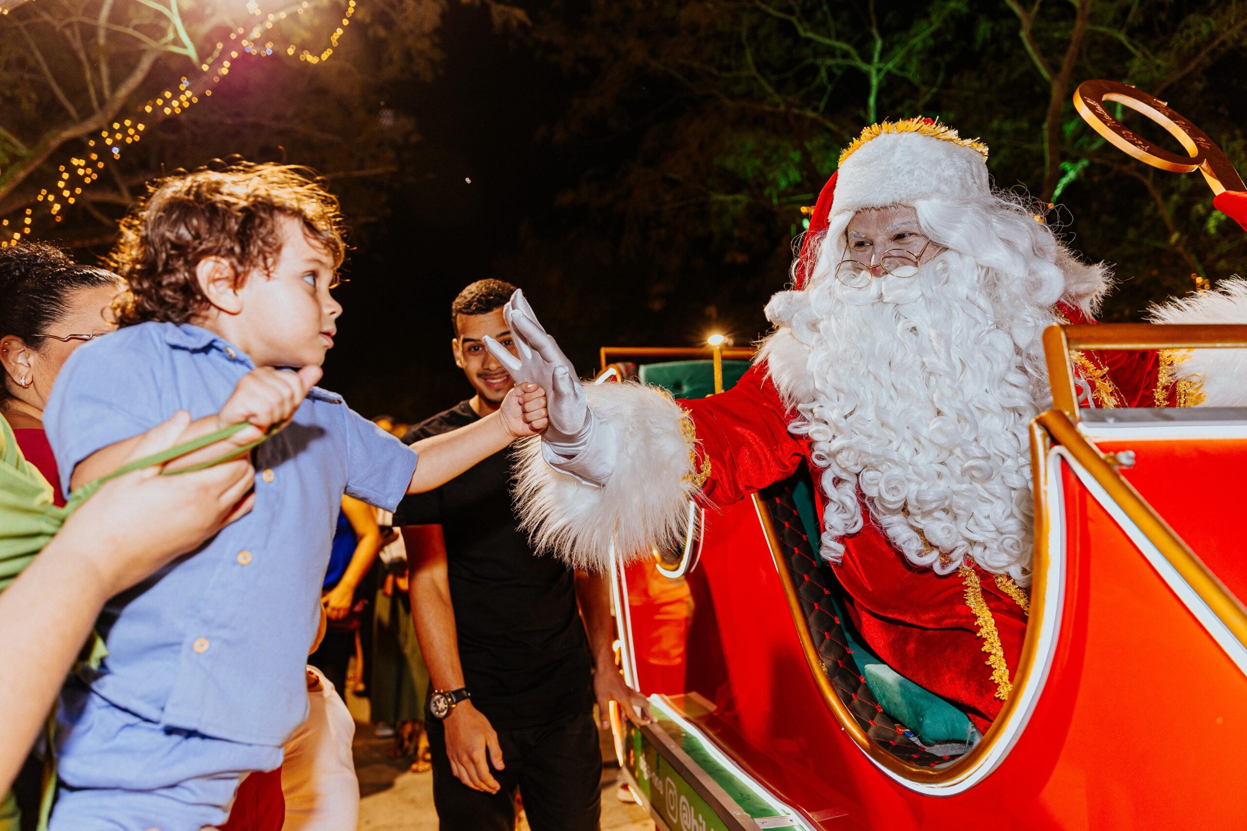 O encanto continuou no Evaldo Cruz com o Desfile Natalino, que levou para o público toda a fantasia e alegria da época. A Orquestra Lira, os personagens da Tia Rosita, a Trupe Natalina, Papai Noel, o Balé do Centro Cultural e os patinadores transformaram o espaço em um corredor de luz e emoção, arrancando sorrisos de adultos e crianças.