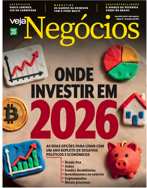 Veja Negócios — “Onde investir em 2026” – Com foco no futuro, a Veja Negócios apresenta um guia para enfrentar um cenário econômico repleto de incertezas políticas e globais. A capa traduz a ansiedade de investidores diante de um ano decisivo, mas também aponta estratégias e caminhos possíveis, equilibrando risco e oportunidade em um Brasil que exige planejamento, diversificação e cautela.