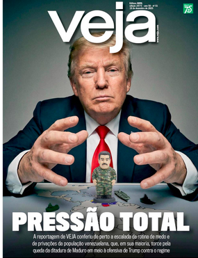 Veja — “Pressão total” – Retrata um cenário internacional de forte tensão política, marcado por autoritarismo, medo e repressão. A composição visual sugere controle absoluto e ameaça constante, enquanto a reportagem aponta para o impacto dessas práticas sobre a população e para o uso da pressão externa como instrumento de disputa geopolítica em um tabuleiro global cada vez mais instável.