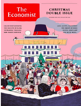 The Economist – A capa especial de Natal reúne, de forma lúdica e simbólica, os principais temas abordados na edição de fim de ano da revista. Em uma cena de festa, personagens históricos, referências culturais e situações improváveis funcionam como pistas visuais para reportagens que exploram histórias escondidas do mundo contemporâneo: de apostas e mercados pouco regulados a desafios globais como alimentar milhares de pessoas no mar, passando por questões de linguagem, comportamento, ciência e história. A proposta é convidar o leitor a olhar com atenção para a ilustração e, a partir dela, mergulhar em análises curiosas, provocativas e variadas sobre como o mundo funciona — e sobre ideias consagradas que ainda merecem ser questionadas.