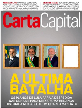 Carta Capital – A revista aposta na leitura histórica do poder ao falar da “última batalha” de Lula. A sucessão de retratos do presidente ao longo dos mandatos reforça a ideia de legado e encerramento de ciclo. O foco está nos planos para um eventual quarto mandato e na tentativa de consolidar uma herança política duradoura em um cenário de polarização e desgaste institucional.