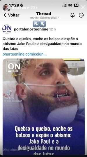 Uma postagem de uma coluna publicada no portal O Norte Online ultrapassou a marca de 100 mil visualizações no Threads em menos de um dia, consolidando um feito raro para conteúdos jornalísticos na plataforma. A publicação foi ao ar hoje de manhã e, por volta das 17h30, já havia alcançado esse patamar expressivo, demonstrando alto poder de engajamento e circulação orgânica.